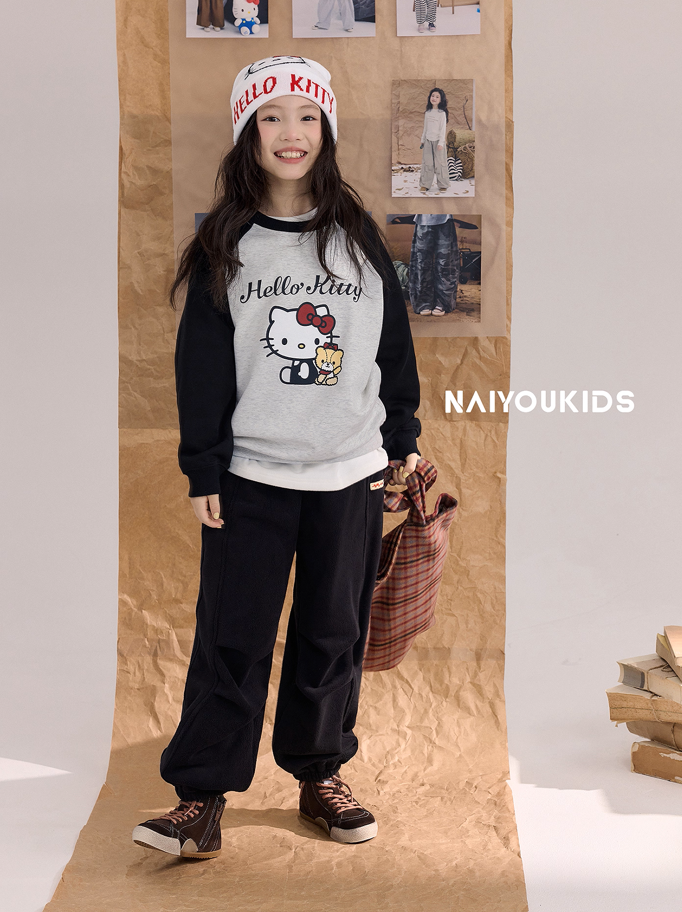 Bộ Nỉ Dài Tay Hello Kitty Phối Quần Nỉ Đen Mềm Mịn