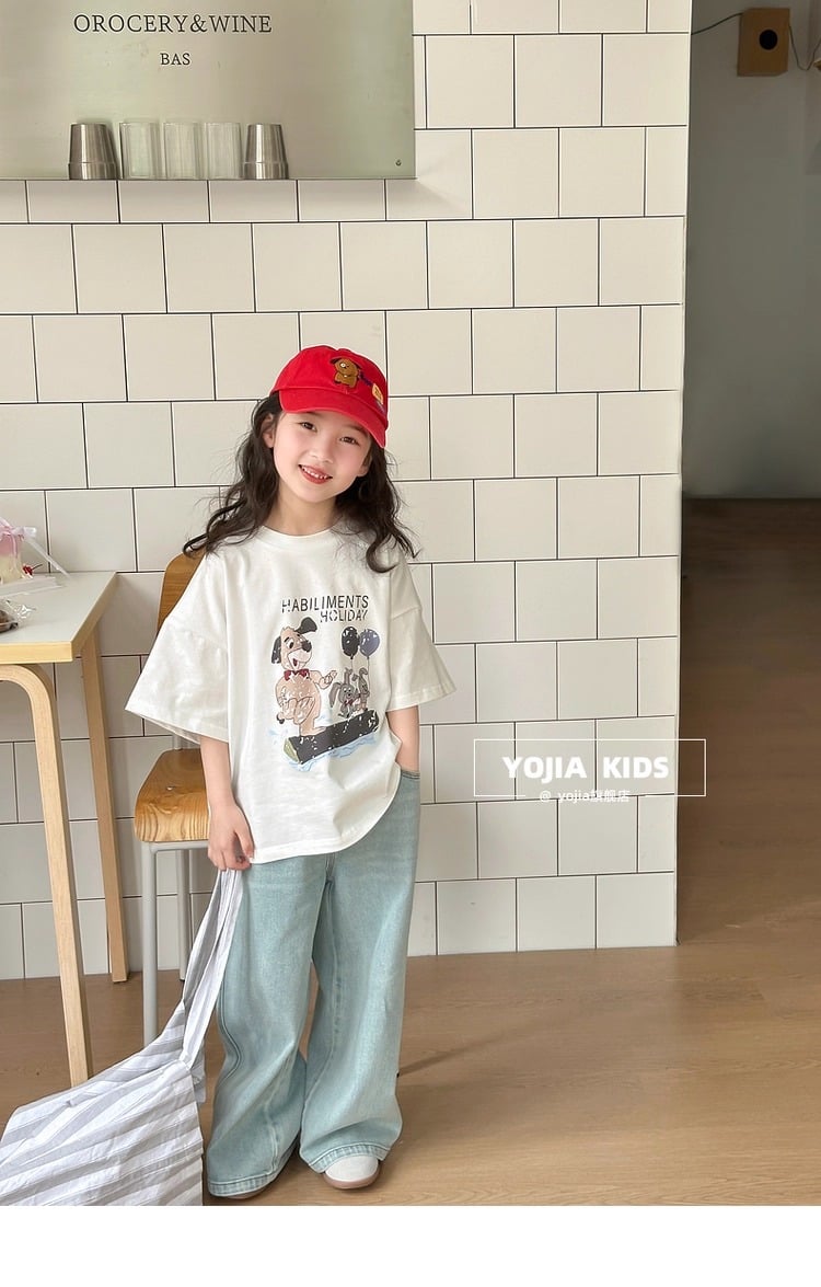 Set Áo Thun Cotton From Rộng In Hình Cún Phối Quần Jean Giặt Mài Mềm Mịn
