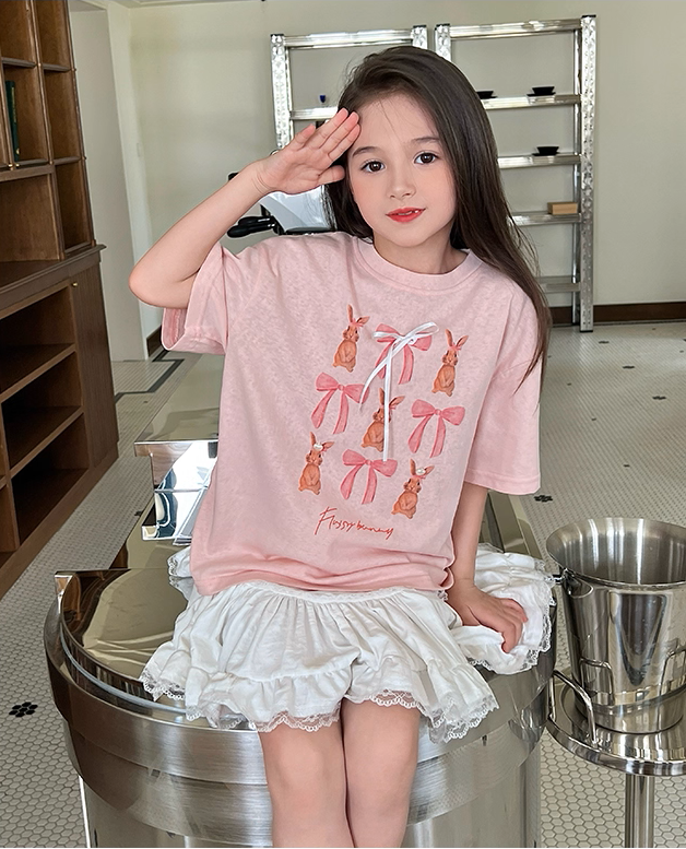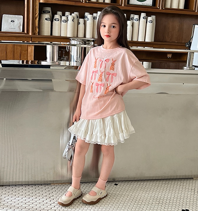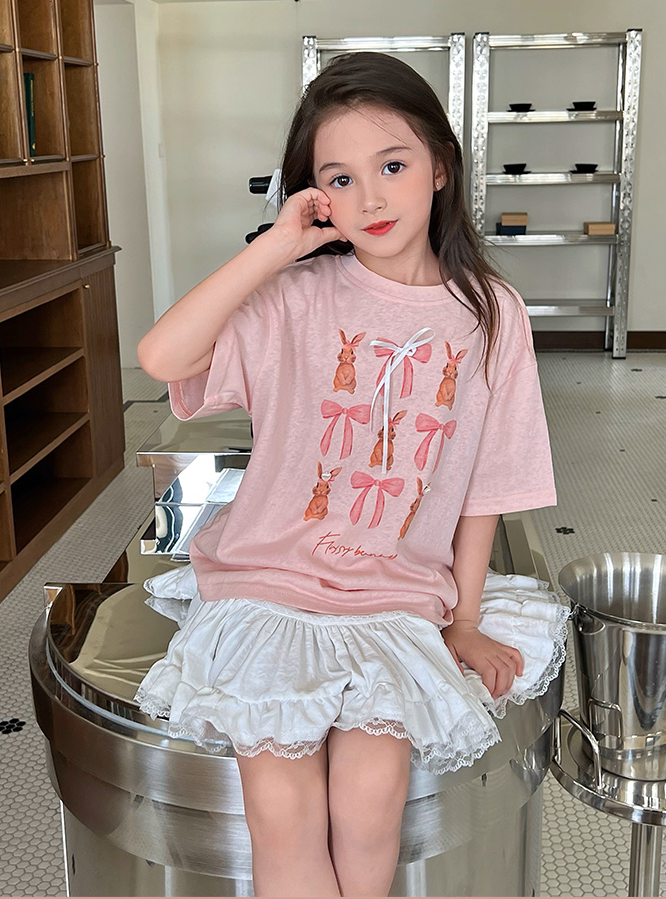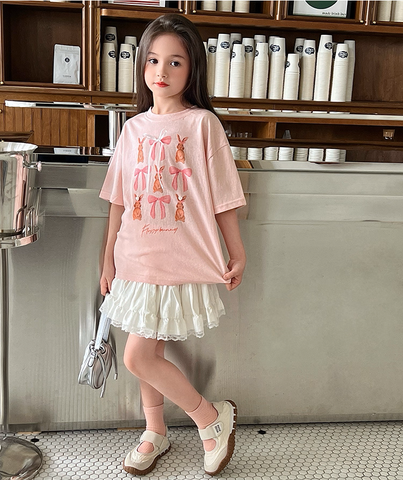 Set Nàng Thơ Áo Thun Hồng Đính Nơ Mix Chân Váy Trắng Phối Ren