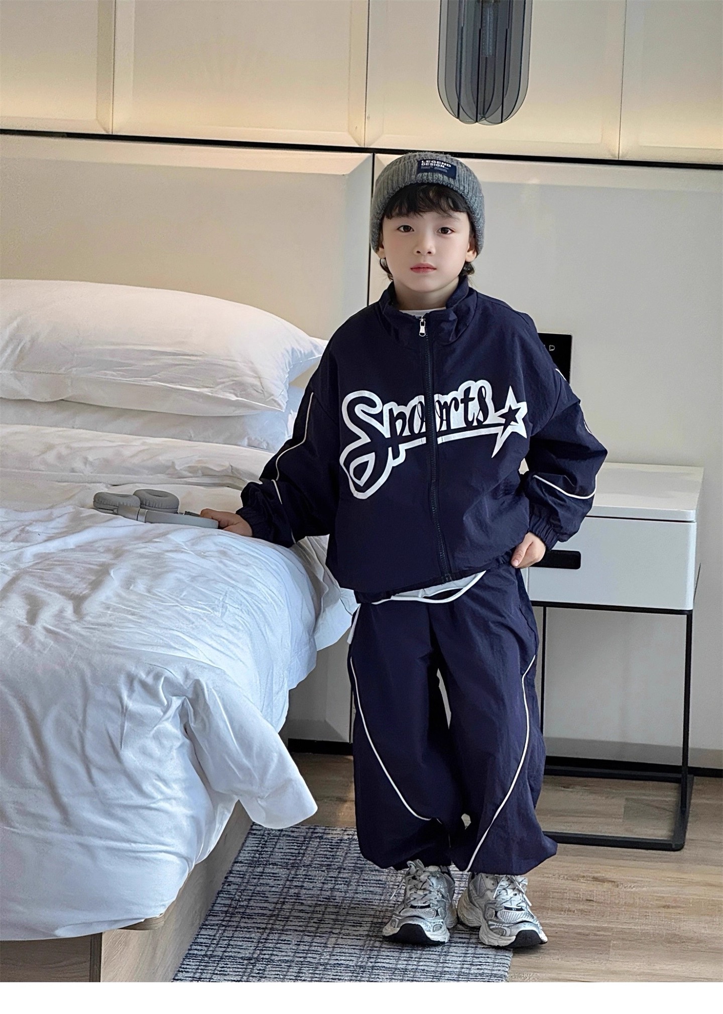 Set Streetstyle Áo Khoác Gió 2 Lớp Viền Sọc Phối Phối Quần Dài Bo Lai